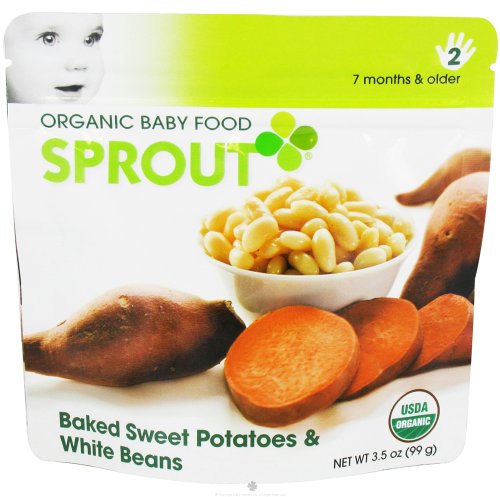- Sprout Intermediate Organic Baby Food - Baked Sweet Potatoes & White Beans (3.5 oz) is produced in small batches using proprietary processes that develop the natural flavors of the ingredients through baking and roasting.